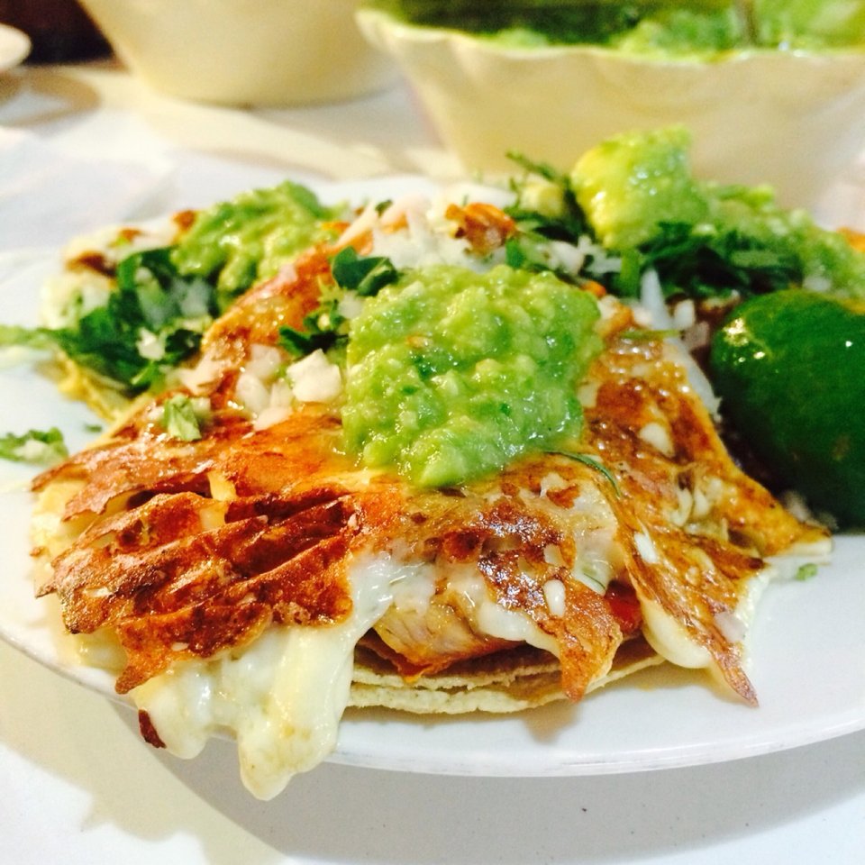 1. Los tacos al pastor con queso quemado y su salsa de guacamole son lo mejor que hemos probado.