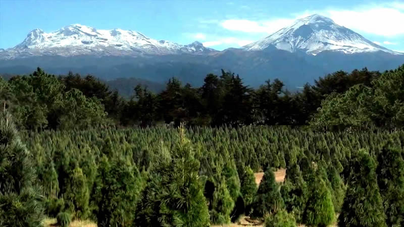 A las faldas del volcán Popocatépetl e Iztaccíhuatl se localiza el hermoso valle de Amecameca, enmarcado por la belleza natural de los pinos navideños que vestirán los hogares mexicanos en estas fiestas.